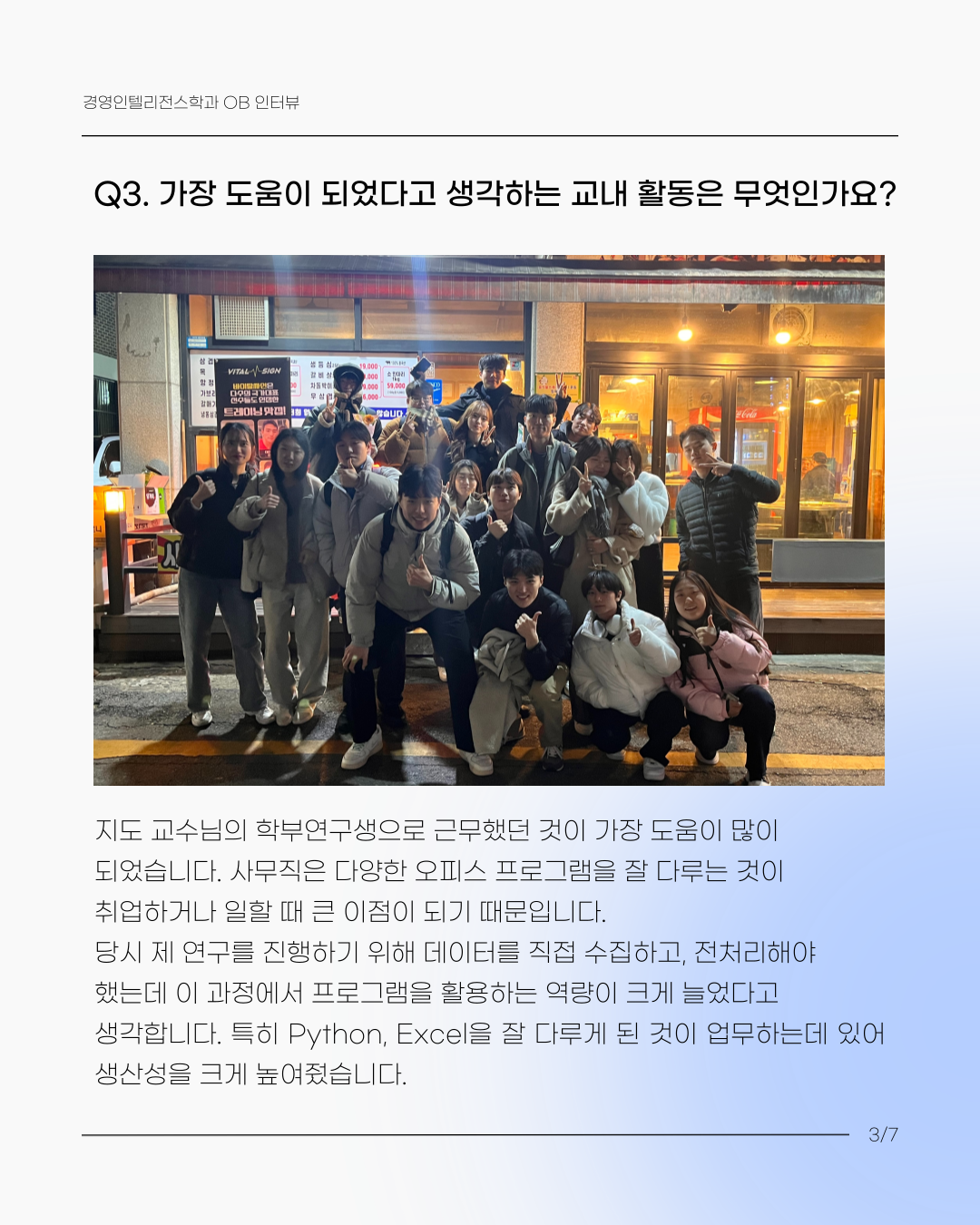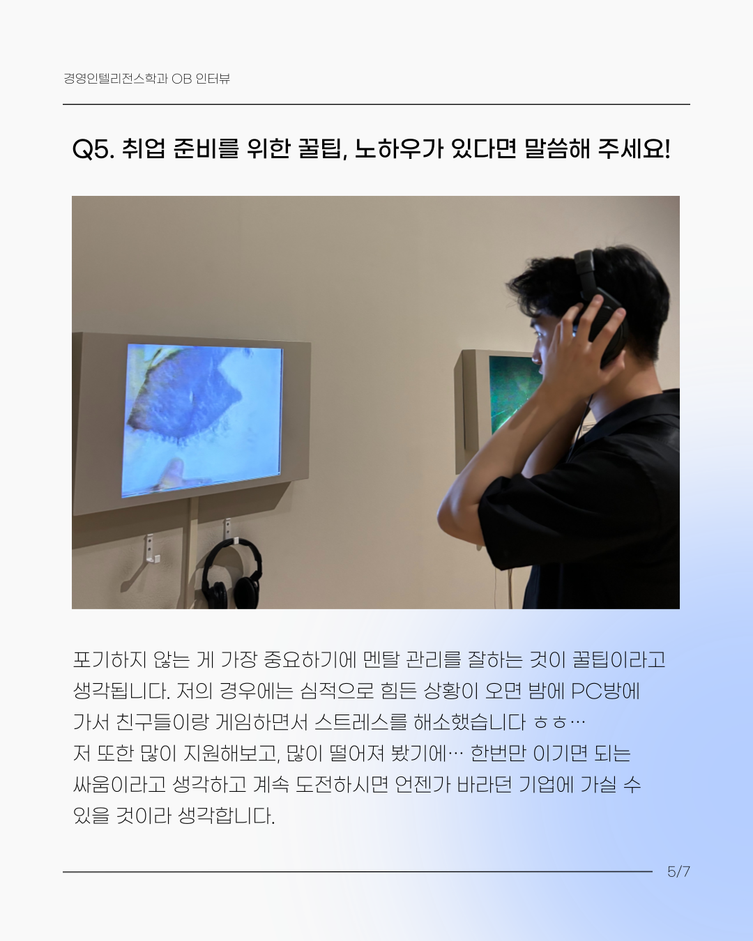 직무 역량은 물론, 대학 생활의 소중함에 대해서도 다시금 느낄 수 있었던 인터뷰였습니다.