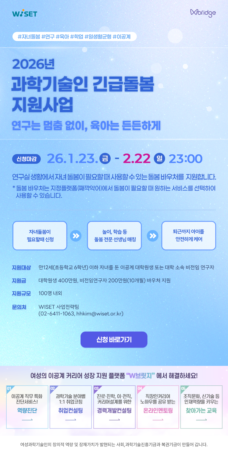 [기타] 2026년 과학기술인 긴급돌봄 지원사업 모집 공고